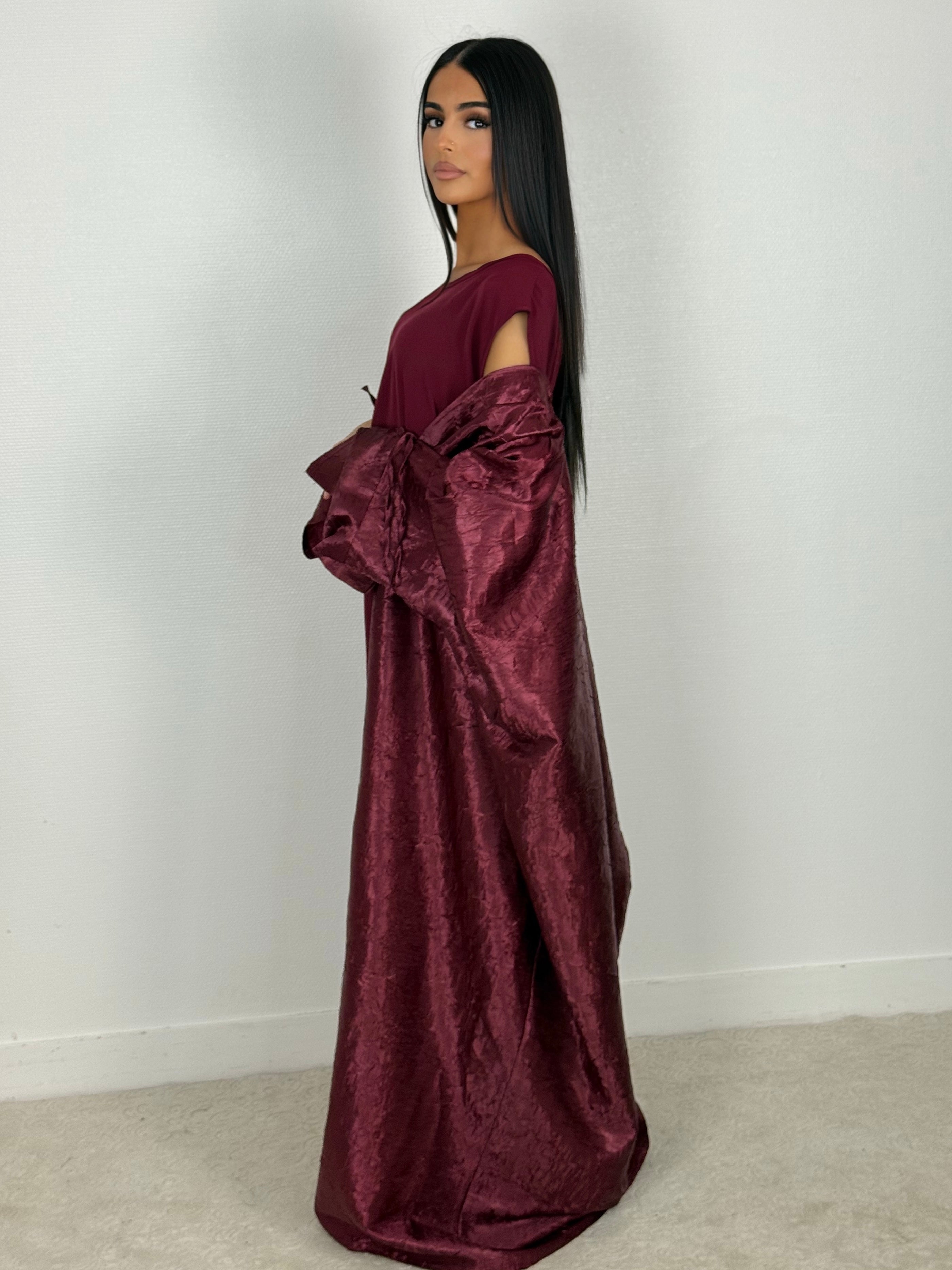 Abaya avec kimono brillant à noeud au bout des manches.