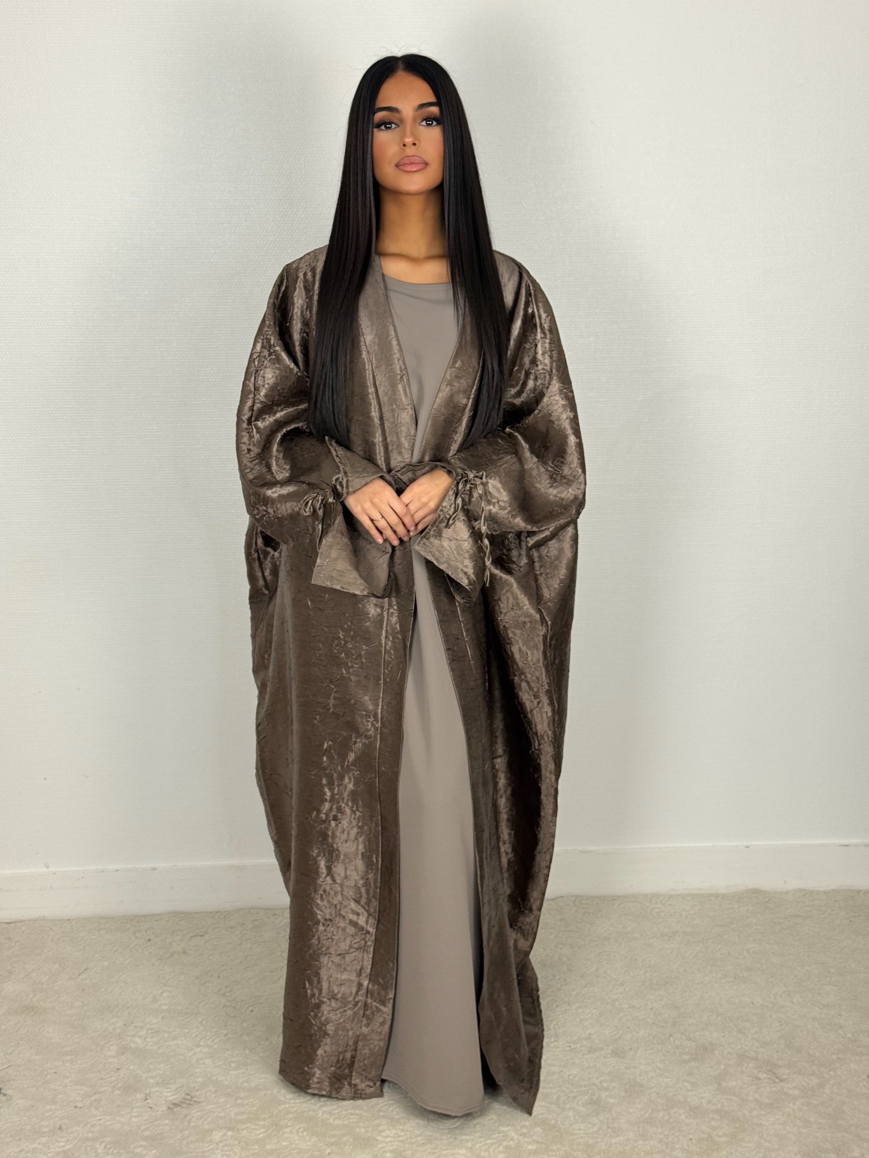 Abaya avec kimono brillant à noeud au bout des manches.