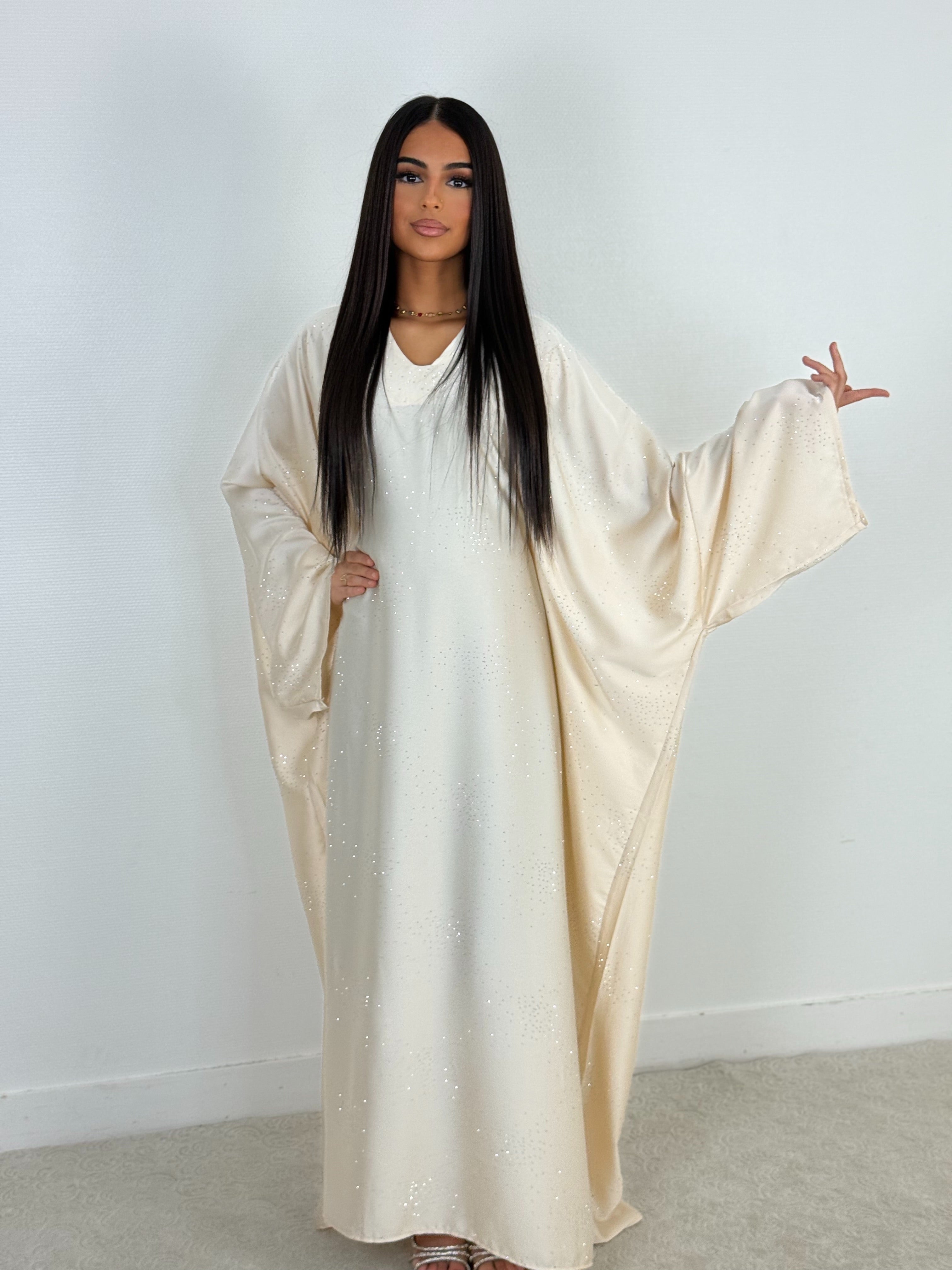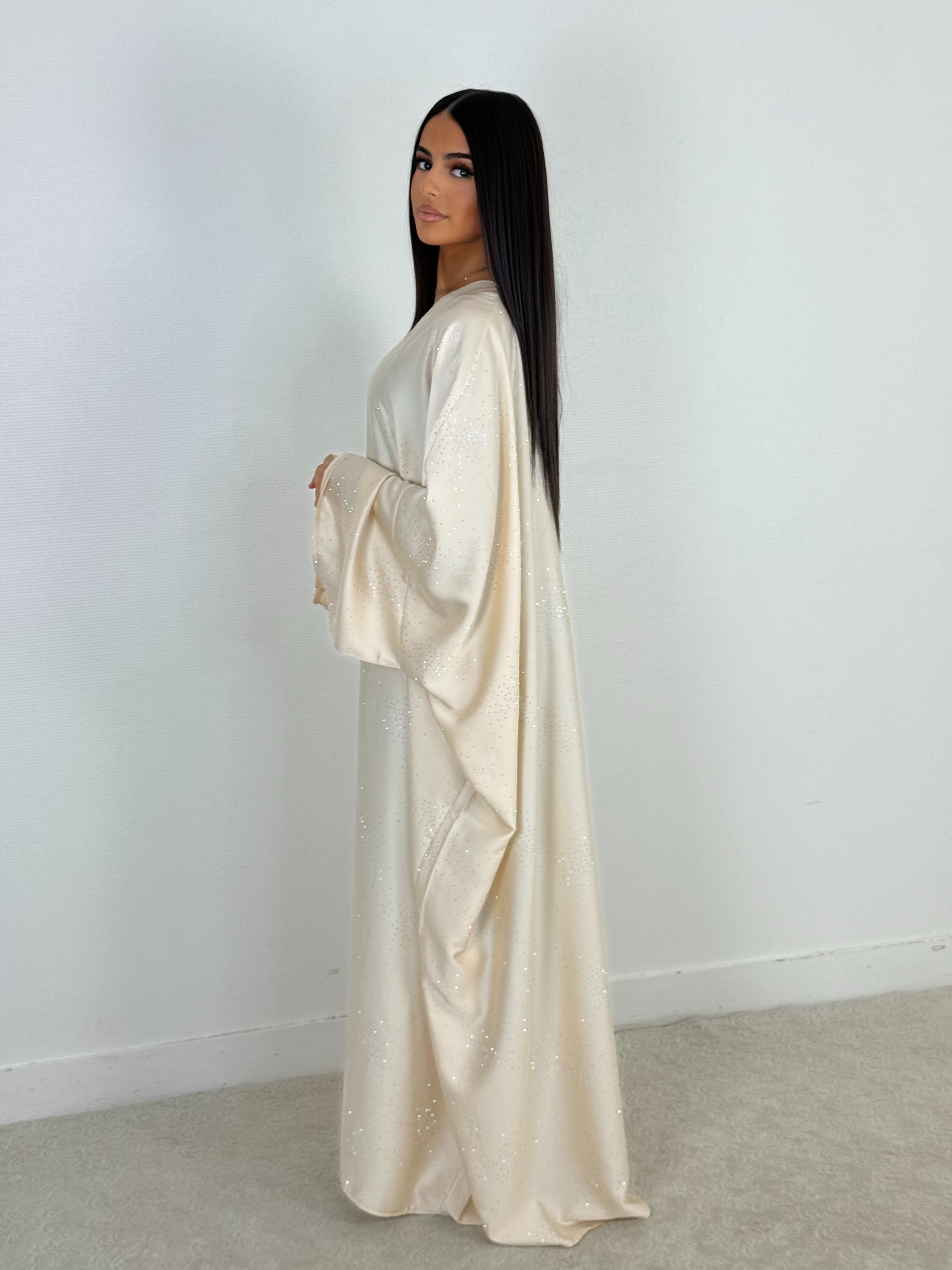 Longue robe qui peut se cintrer de l'intérieur avec plusieurs paillettes sur la robe.