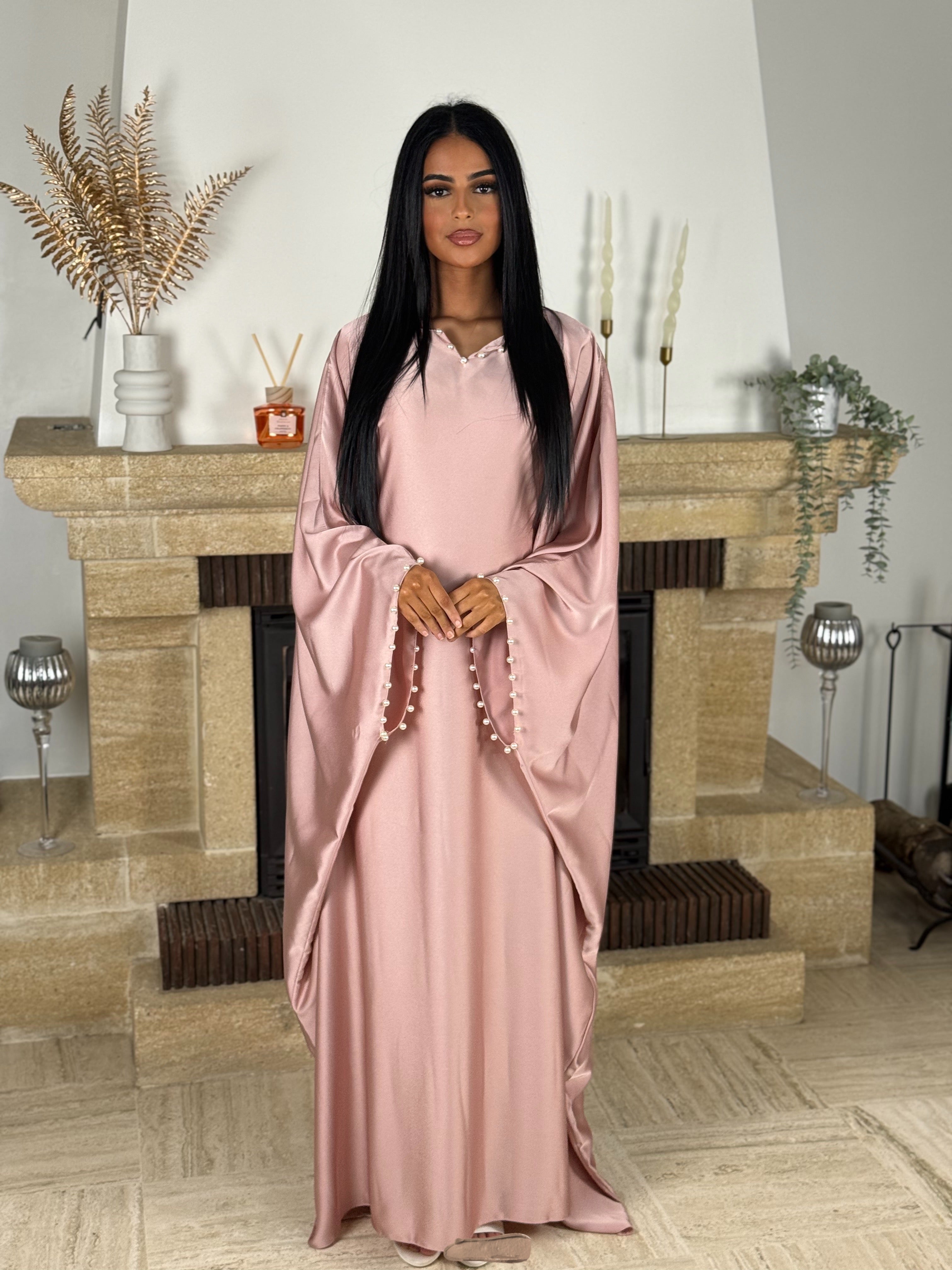 ABAYA À PERLES ROSE